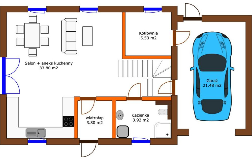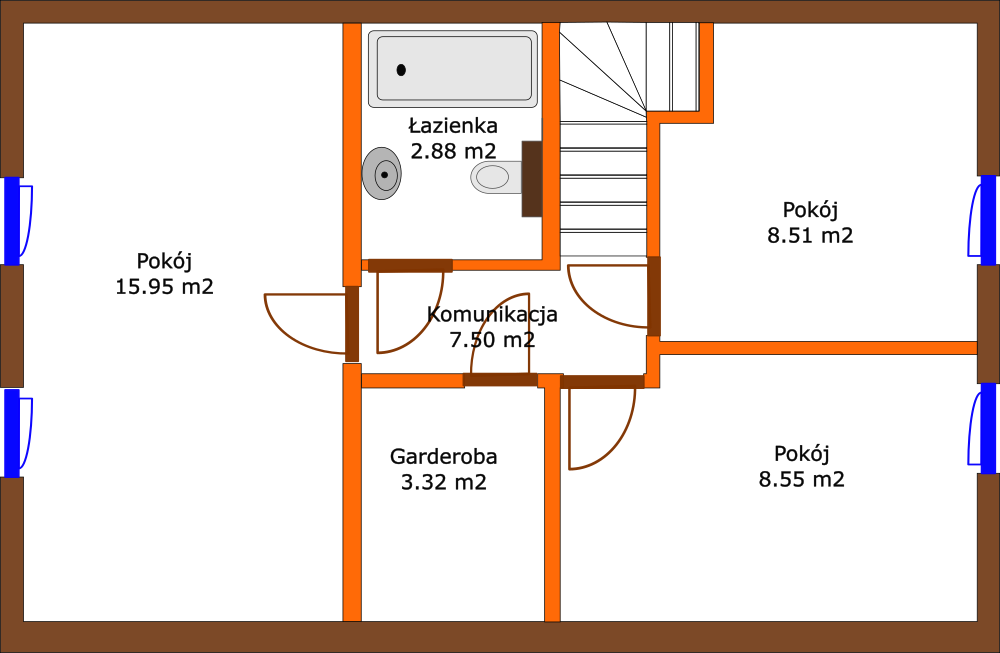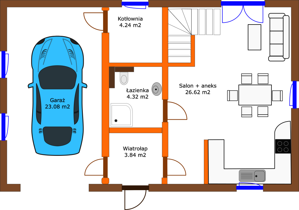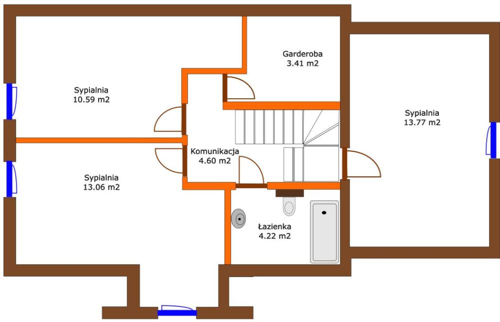 Wymiary zewnętrzne: 13.42m x 7.42m